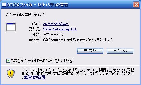 ダウンロードしたプログラムをダブルクリックし、[実行]をクリック